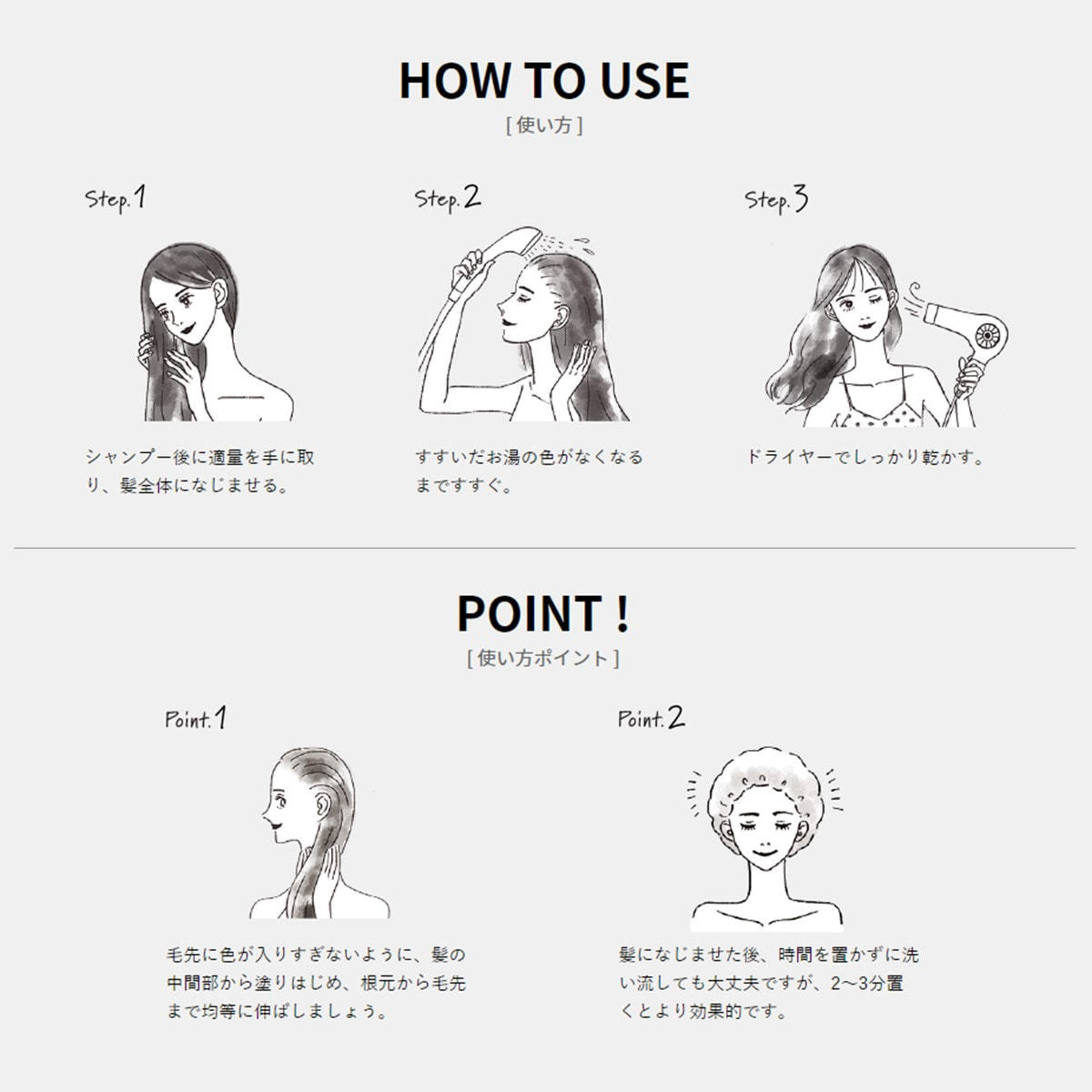 「カラーシャンプーを使ったら、手の爪まで染まる」ということがないように、爪は染まりにくい絶妙なバランスで成分を配合しています。